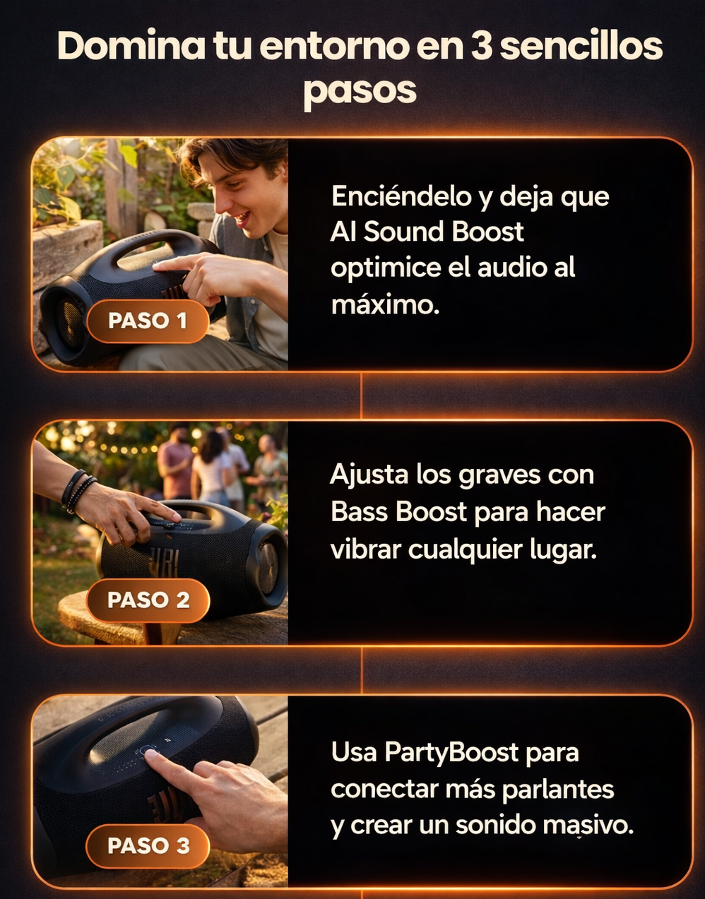 Uso ideal: Fiestas, viajes y reuniones en interiores y exteriores